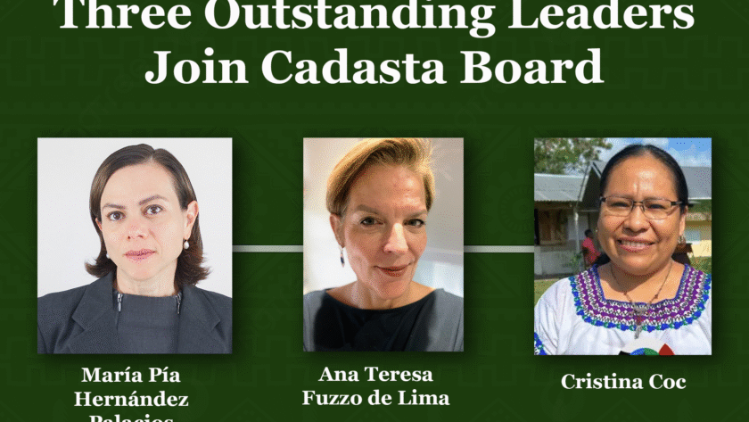 Cadasta is pleased to announce the appointment of three distinguished leaders—María Pía Hernández Palacios, Ana Teresa Fuzzo de Lima, and Cristina Coc—to its Board of Directors. Each bring extensive expertise in environmental governance, climate action, and rights-based approaches that will strengthen Cadasta’s mission to secure land and resource rights worldwide.